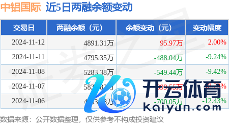 本站讯息,11月12日开yun体育网,中铝国外(601068)融资买入504.91万元,融资偿还408.56万元,融资净买入96.35万元,融资余额4869.9万元。