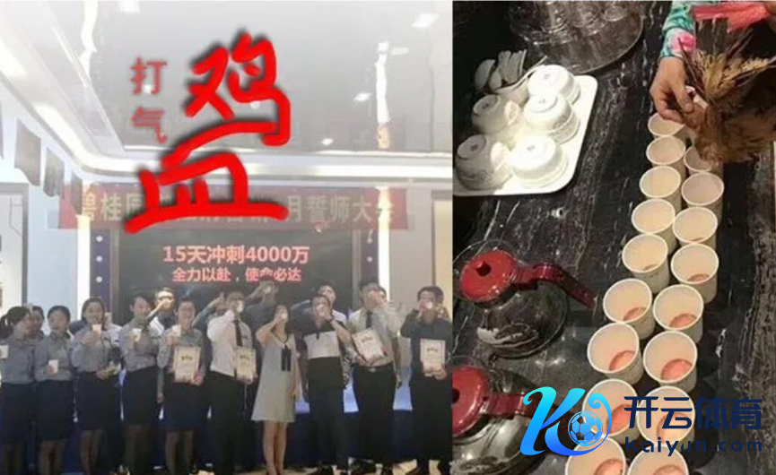 某名目标誓师大会上,职工集体喝鸡血宣誓:奋战15天,冲刺5000万。