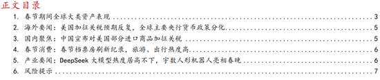 三、国内聚焦:中国通知对好意思国部分入口商品加征关税。1)2月4日,国务院关税税则委员会发布公告,自2025年2月10日起,对原产于好意思国的部分入口商品加征关税;2)受春节沐日左近、企业职工采集返乡等要素影响,1月制造业PMI有所回落;3)证监会主席吴清在《求是》杂志刊发了题为《死力始创成本市集高质地发展新地点》的签字著述。